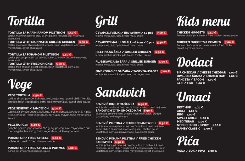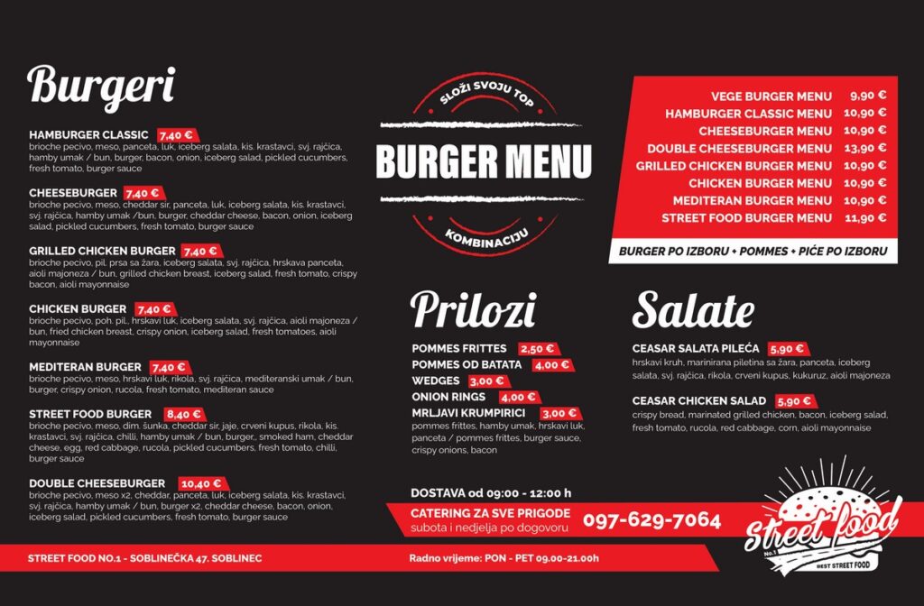 Burgeri bogatih okusa, domaći krumpirići nevjerojatne arome. Zgrabi sendvič prije posla, škole, fakulteta, u vrijeme pauze i odmori se.